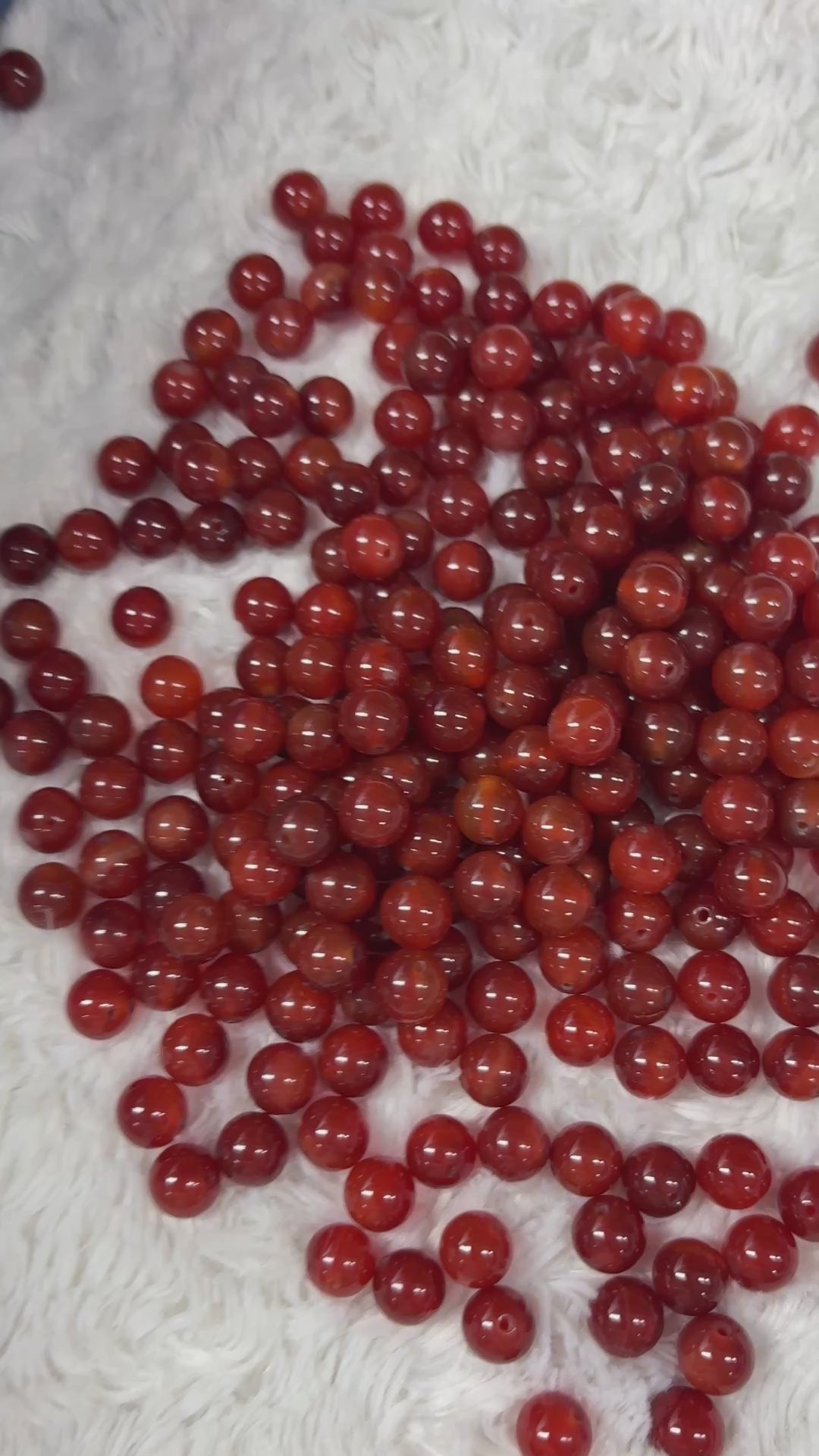 Huom ❤️ Koska materiaalina on luonnonkivi, voi joissakin helmissä olla pieniä uurteita. Helmissä voi olla pieniä kokoeroja. Väritys punainen, tietyssä valossa voi olla taipumusta oranssiin tai ruskeaan.