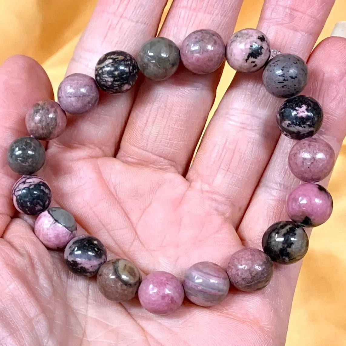 Niin kaunis rodoniitti rannekorumme 🩷🖤 Sen avulla hoidat ja vahvistat sydänchakraasi. Koru rohkaisee sinua, se opettaa rakastamaan ja hyväksymään. Myötätuntosi lisääntyy ja olosi tasapainottuu, samalla kun oma voimasi nousee esiin 🩷 Pystyt kohtaamaan sydämeesi piilotetut kipeät muistot rakkauden kautta ja tämä vie sinua suurin askelein eteenpäin 👣✨