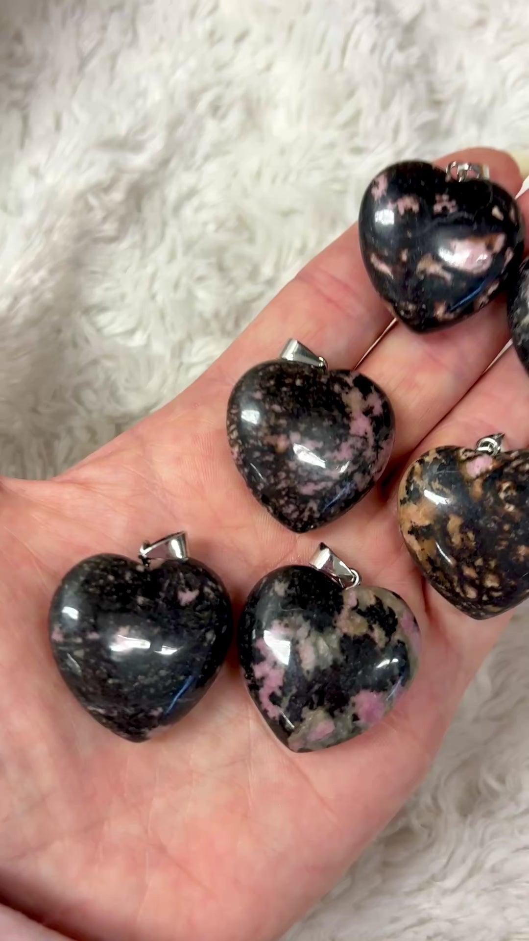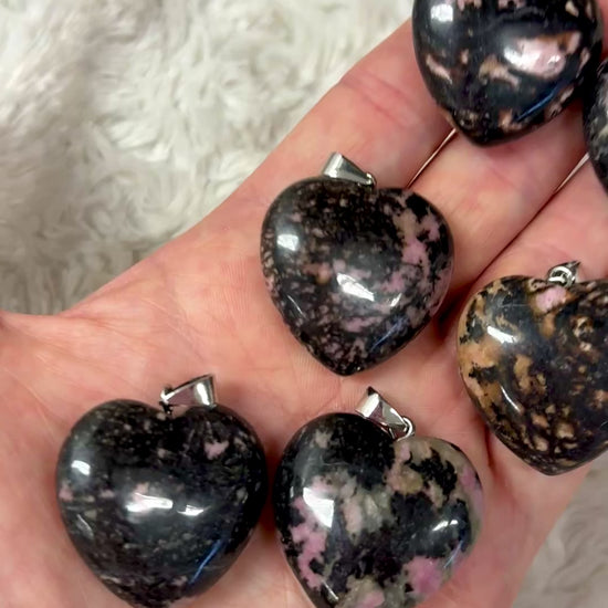Todella upea sydänkaulakoru rodoniitista 🩷 Rodoniitti nostaa sinussa sydämesi rohkeuden pintaan 🩷🖤 Tähän kategoriaan on valittu väritykseltään ja energialtaan erityisen voimakkaat, tummasävyiset sydämet 🙏🏻
