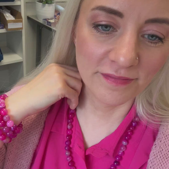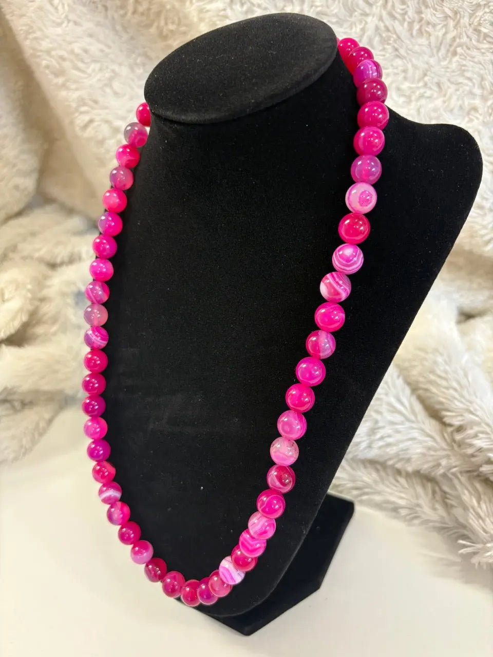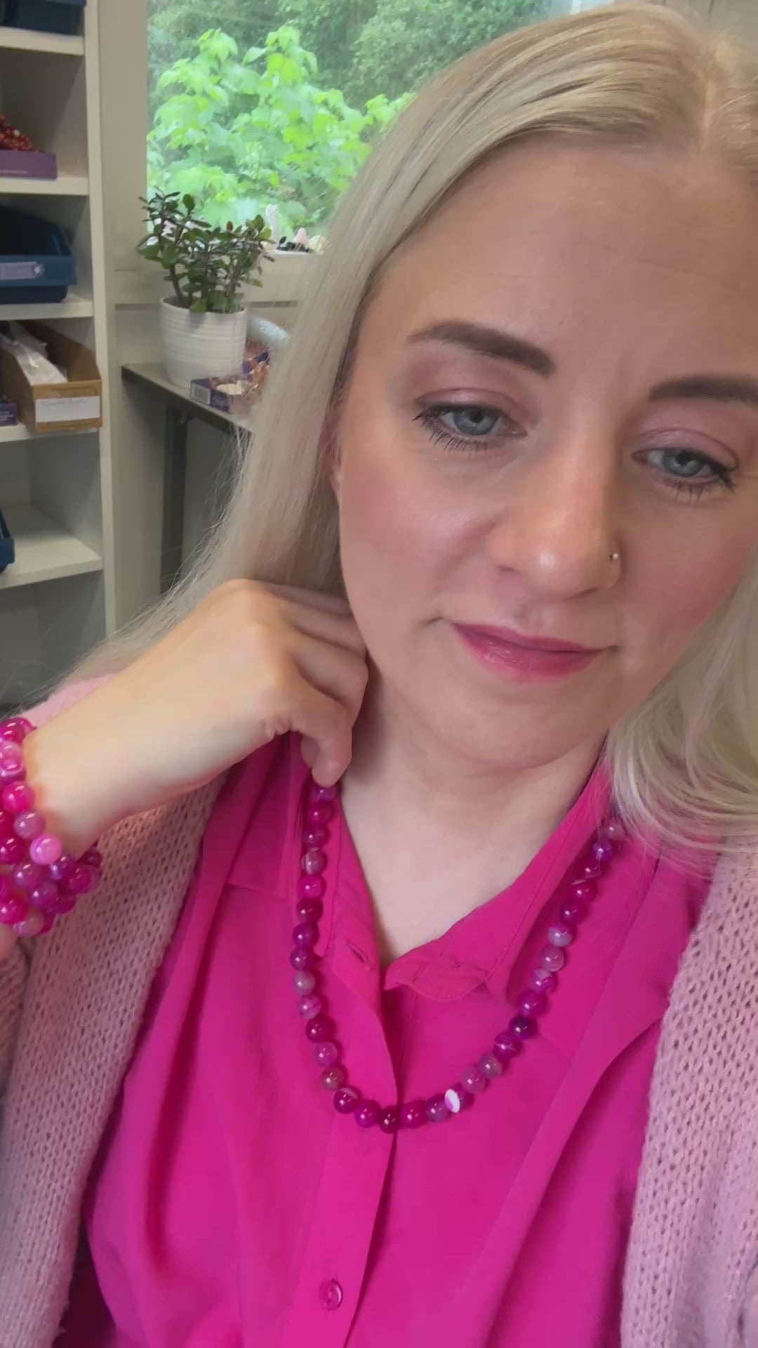 Huom 🩷 Koska materiaalina on luonnonkivi, voi joissakin helmissä olla pieniä uurteita, koloja tai juonteita. Ne ovat normaaleja ominaisuuksia luonnollisissa kivissä ja kristalleissa. Helmissä voi olla pieniä kokoeroja.