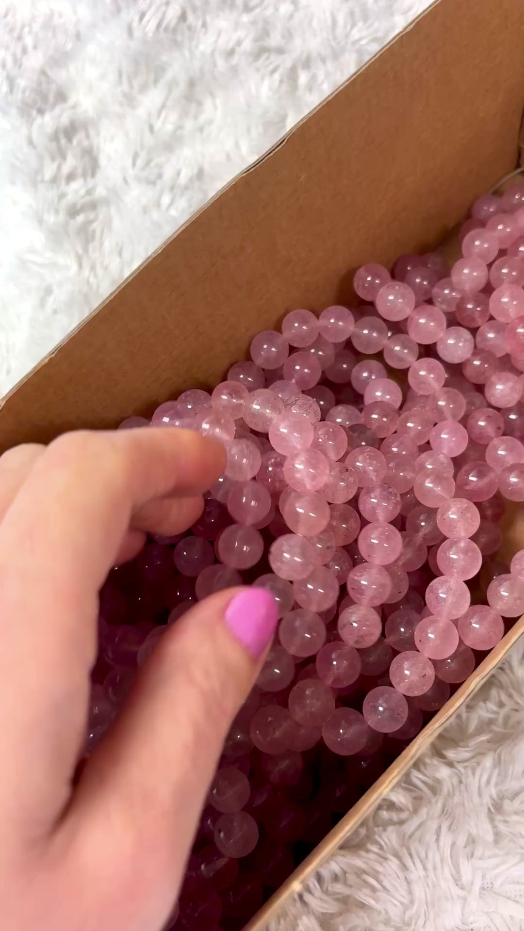 Huom 🩷 Koska materiaalina on luonnonkivi, voi joissakin helmissä olla pieniä uurteita tai luonnollisia muotoja. Helmissä voi olla pieniä kokoeroja ja värivaihteluita.
